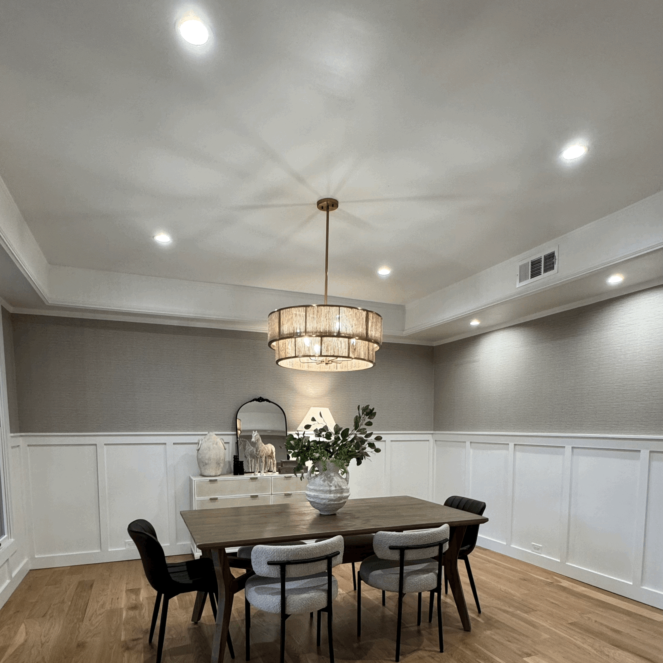 Upgrade rooms with low profile 6” LED recessed lights, selectable color temps, energy efficient, and low profile. Includes Fixture and Professional Installation